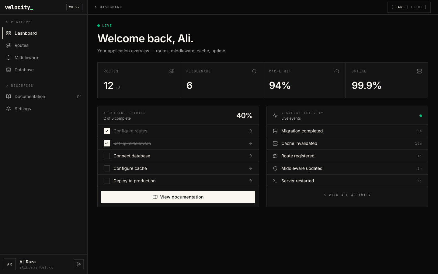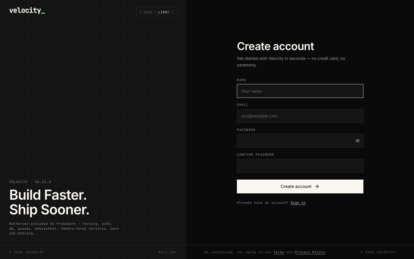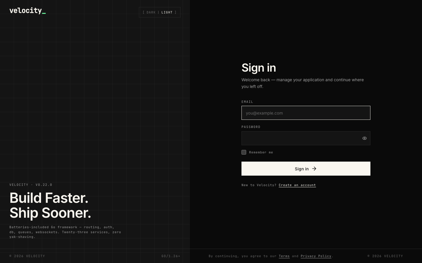 >Velocity is packed with production-ready features designed to accelerate your Go development
